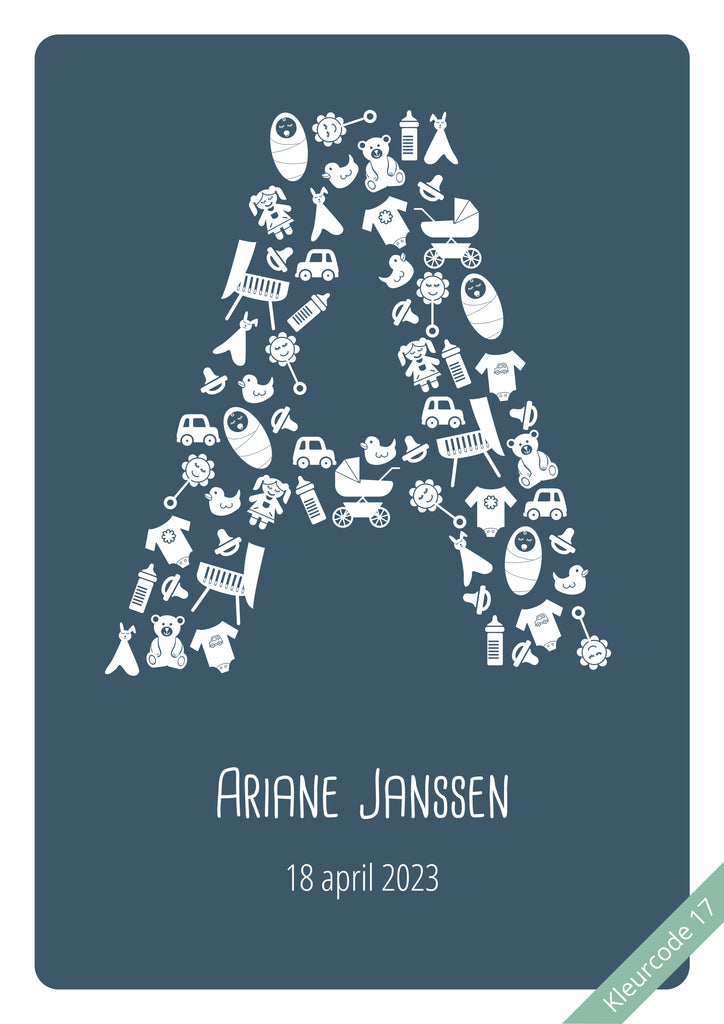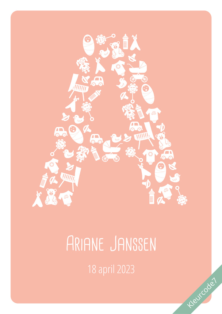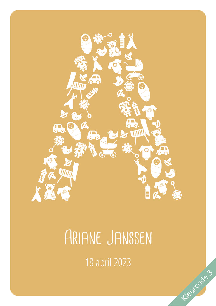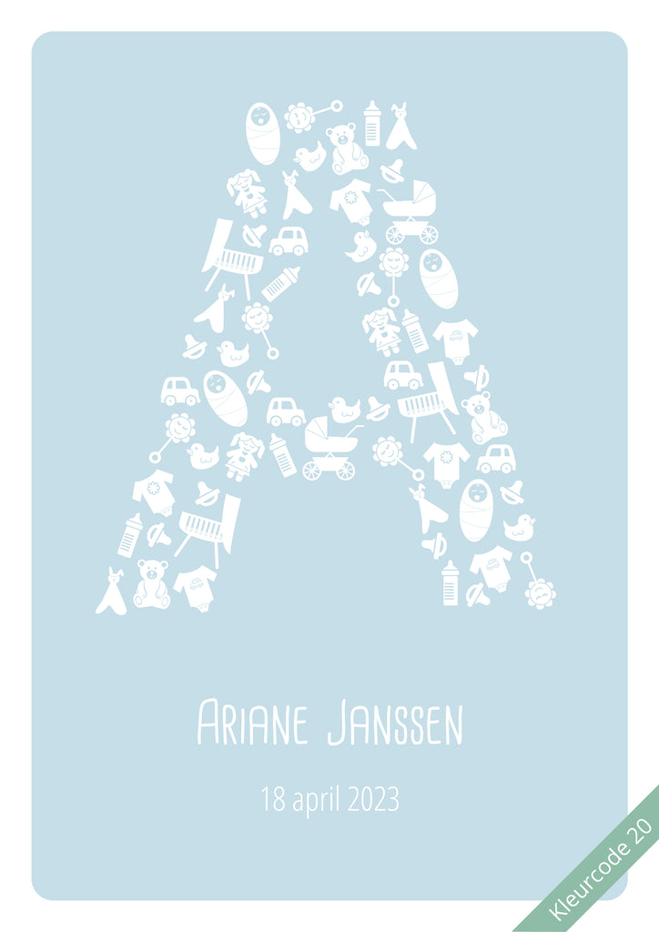 Het perfecte cadeau voor elke newborn! Vrolijk elke babykamer op met een gepersonaliseerde A4 babyposter. Voorzien van naam en geboortedatum, kleur passend bij de babykamer. Een bijzonder aandenken aan de geboorte van een klein wondertje.